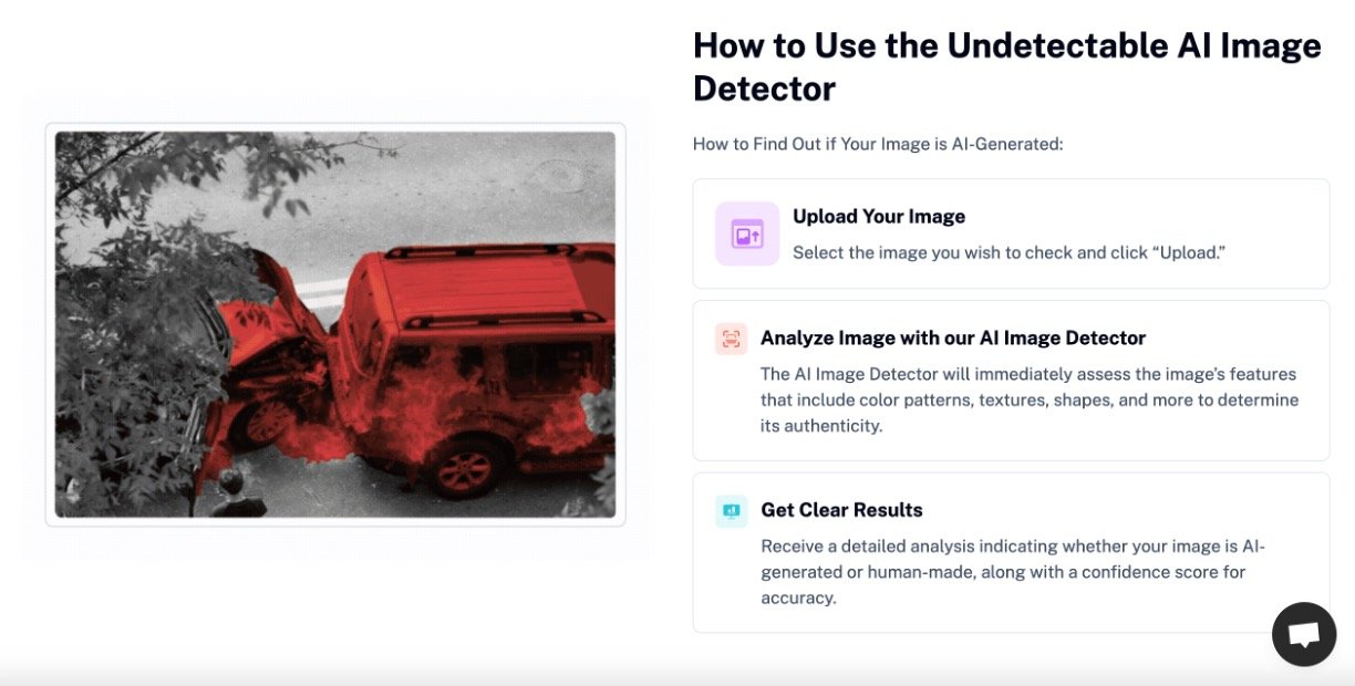 The Undetectable AI Image Detector is a cutting-edge tool designed to reliably identify whether an image is AI-generated or human-made. Powered by advanced machine learning and the TruthScan engine, it assesses patterns such as color, texture, and shapes to provide a confidence score on the image's authenticity. Its user-friendly drag-and-drop interface requires no technical skills, making it accessible for journalists, social media users, businesses, and personal security purposes. It supports images from popular AI generators like MidJourney, DALL-E, and Stable Diffusion while ensuring no images are stored, prioritizing user privacy.