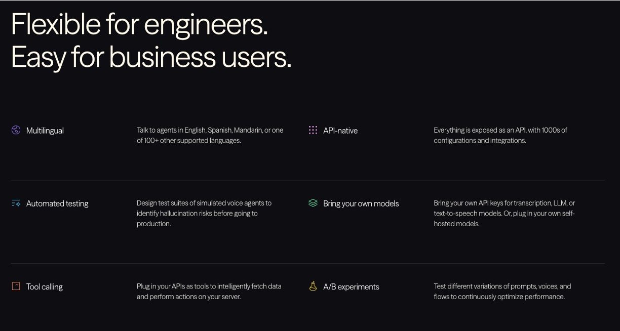 Vapi is a powerful platform for creating advanced voice AI agents that automate phone-based tasks for businesses—from scheduling appointments to customer support—with natural, human-like conversations. Vapi streamlines call handling by integrating seamlessly with over 40 apps, supporting 100+ languages, and running on reliable real-time infrastructure. Its developer-friendly API and workflow builder let users design, test, and deploy voice assistants quickly—no deep coding skills required. With scalable, secure systems and flexible model support, Vapi makes enterprise-grade voice automation accessible to teams of any size, including non-technical users.