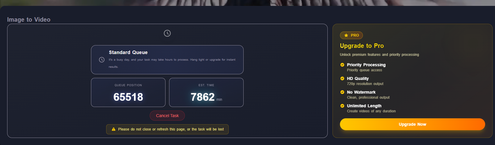 Unlimited free image-to-video generation, with no hidden costs or sign-up required.
