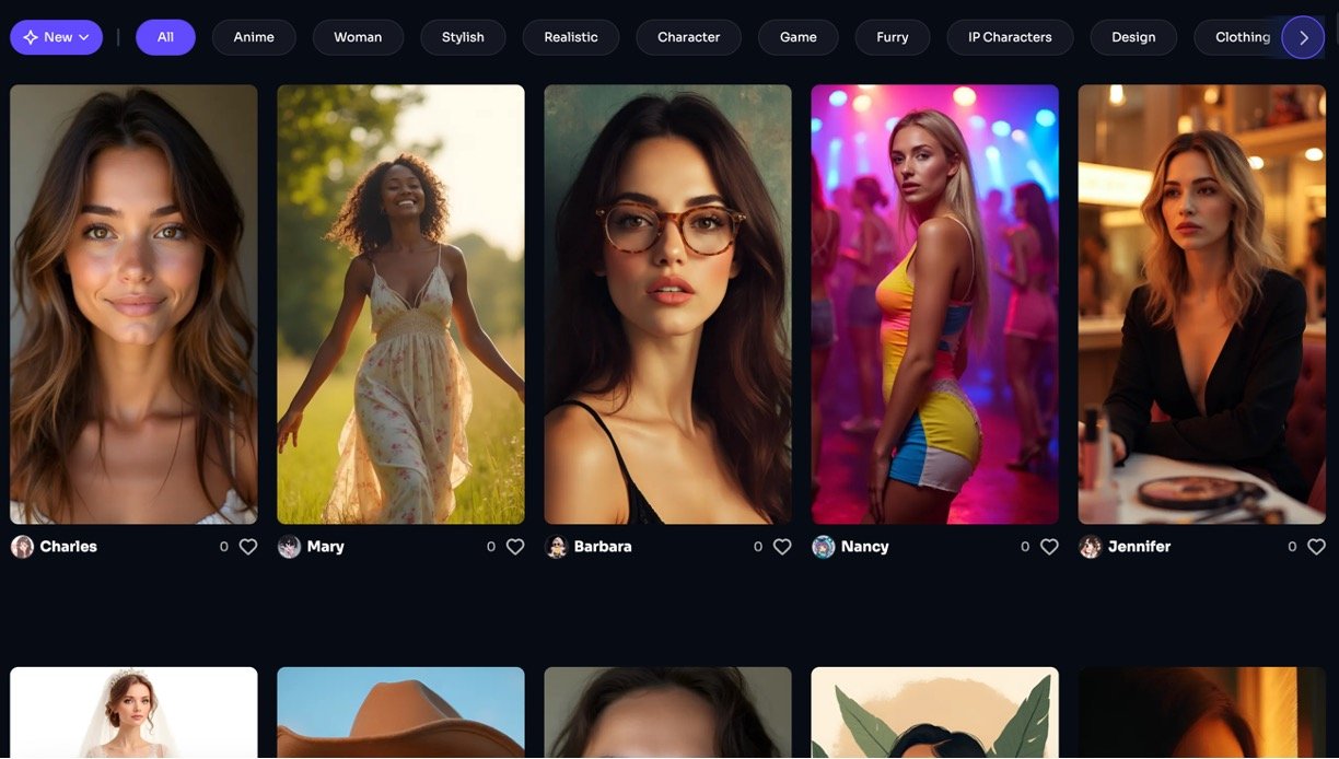 Real-time AI character creation with detailed customization (appearance, outfits, expressions).
