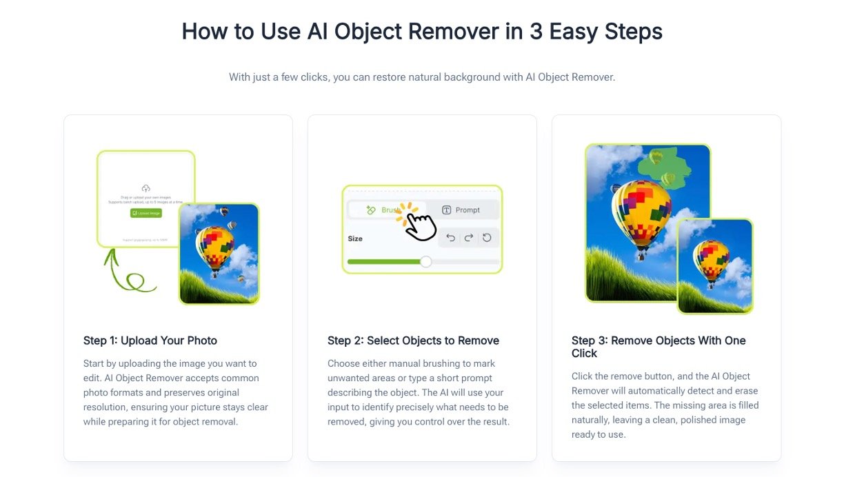 VisualGPT AI Object Remover is a free online tool that lets you erase unwanted people, text, watermarks, or objects from photos with smart AI, filling in the background naturally so your images look clean and professional—no editing skills needed.