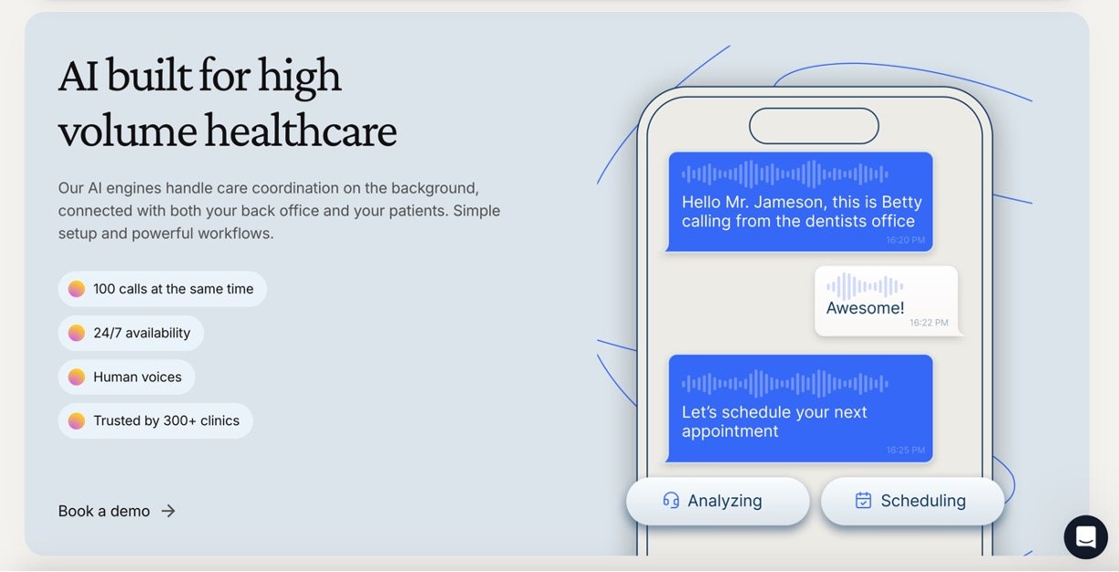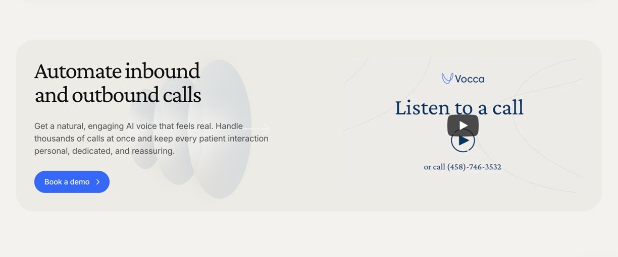 Vocca is an AI-powered voice assistant designed specifically for healthcare practices to manage patient calls, appointment bookings, reminders, and inquiries 24/7. It functions as a virtual medical receptionist that handles both inbound and outbound calls, drastically reducing missed calls and no-shows while freeing up administrative teams to focus more on patient care. Vocca’s conversational AI uses natural, human-like voices and can manage over 100 calls simultaneously. Trusted by over 300 clinics, it integrates seamlessly with existing calendars, CRM systems, and practice management tools, ensuring efficient and personal patient interactions.