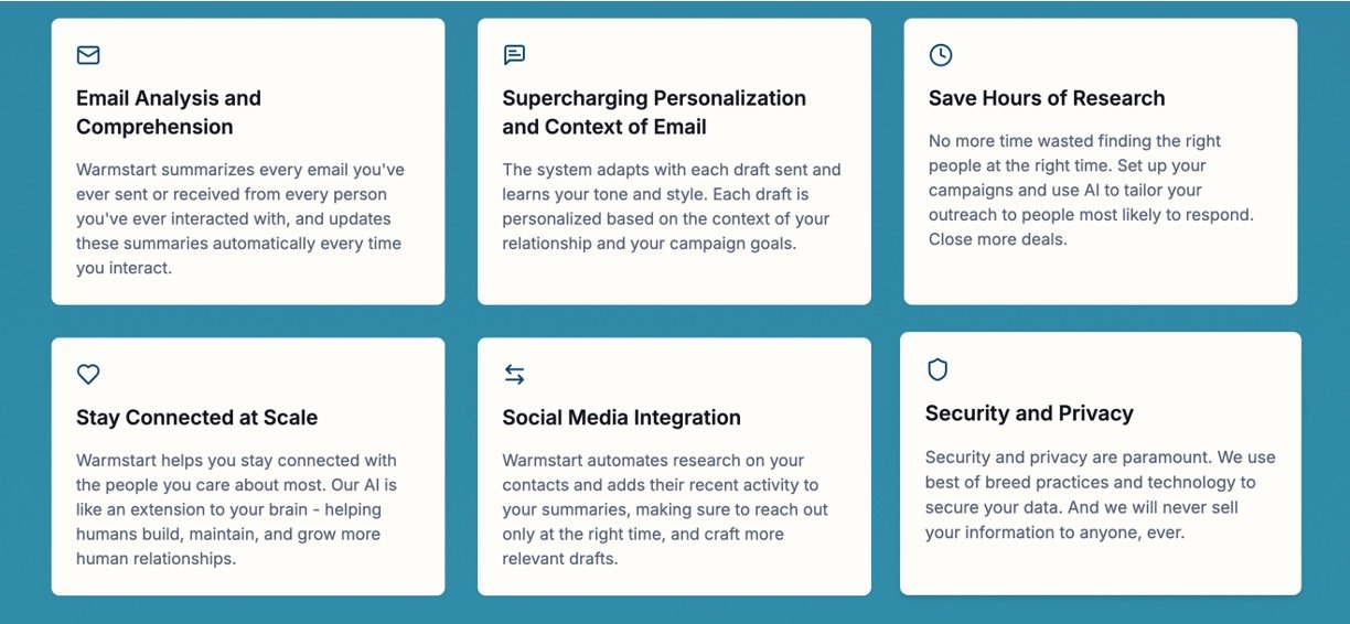 Warmstart AI helps founders and business builders turn their existing networks into real revenue without awkward cold pitches or wasting hours on manual check-ins. The AI watches your contacts for the right moments—like job changes, funding rounds, or email opens—and suggests authentic messages that sound just like you. It saves time while keeping relationships genuine, perfect for busy people with little tech experience.