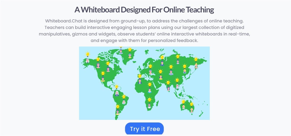 Whiteboard is a free interactive online whiteboard designed for teachers to create engaging lessons, assign individual student boards, and monitor progress instantly during remote, hybrid, or in-person classes. Teachers upload materials or build activities with built-in tools like manipulatives and widgets, while students work privately on their own copies that sync live to the teacher. This setup boosts classroom control, saves time on grading, and makes learning fun and inclusive for everyone.