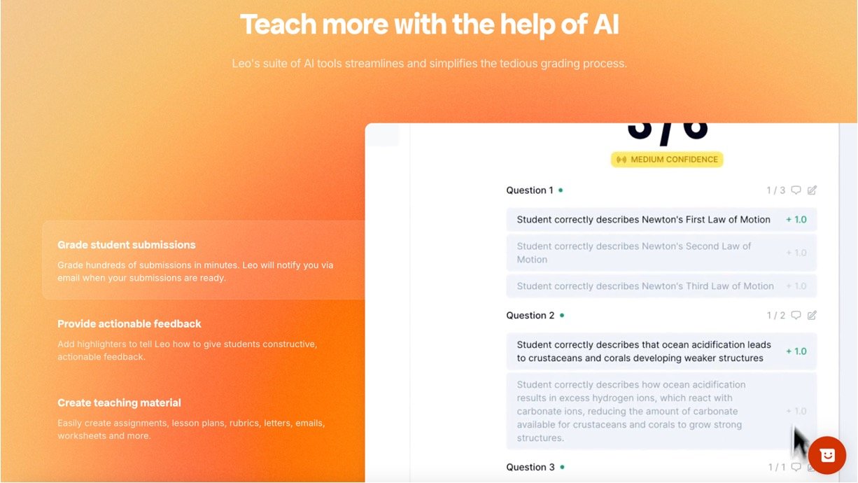 Leo AI is a friendly helper built just for teachers, making grading super fast and creating lesson stuff a breeze so you can spend more time with your students. It uses smart AI to handle hundreds of assignments in minutes, gives helpful feedback, and connects right to tools like Google Classroom or Canvas. Start for free and say goodbye to hours of boring paperwork—Leo makes teaching fun again.