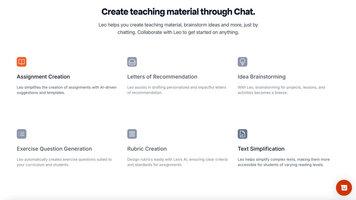 Easy content maker: Chat with Leo to whip up assignments, rubrics, quizzes, letters, or simplified texts tailored to your class.