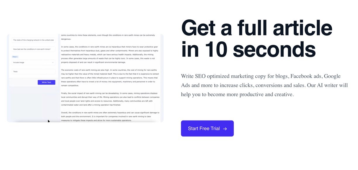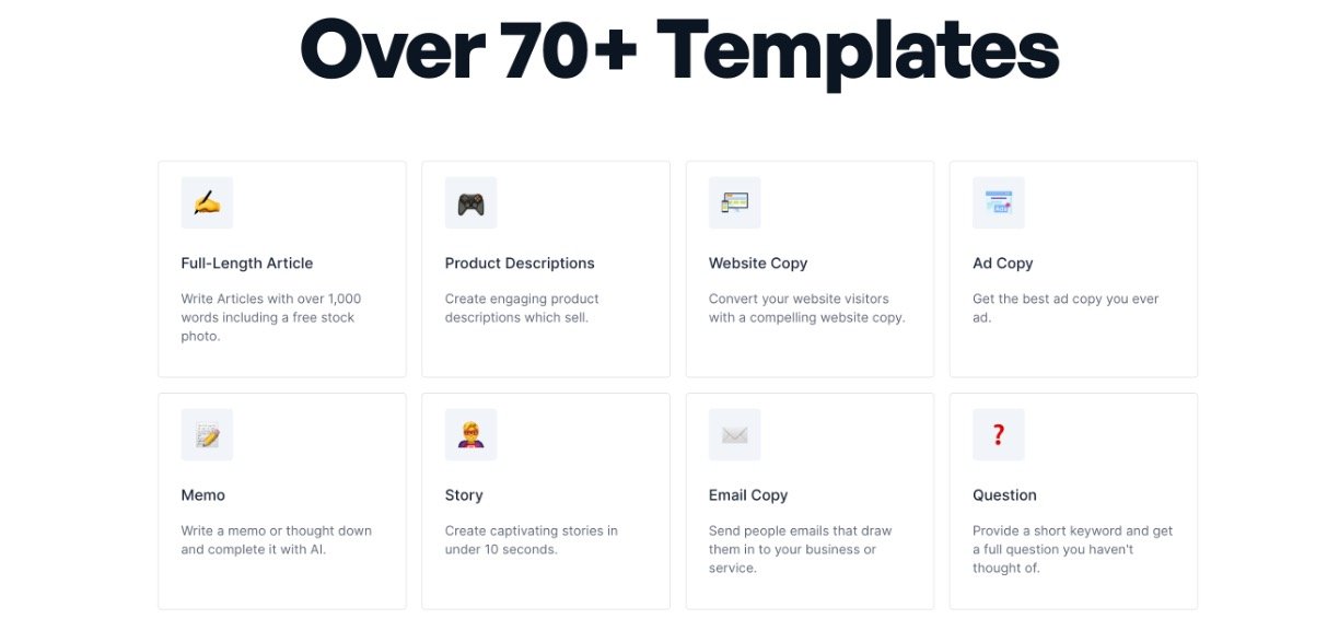 Generates SEO-optimized long-form articles and marketing copy quickly with over 40 ready-to-use templates.